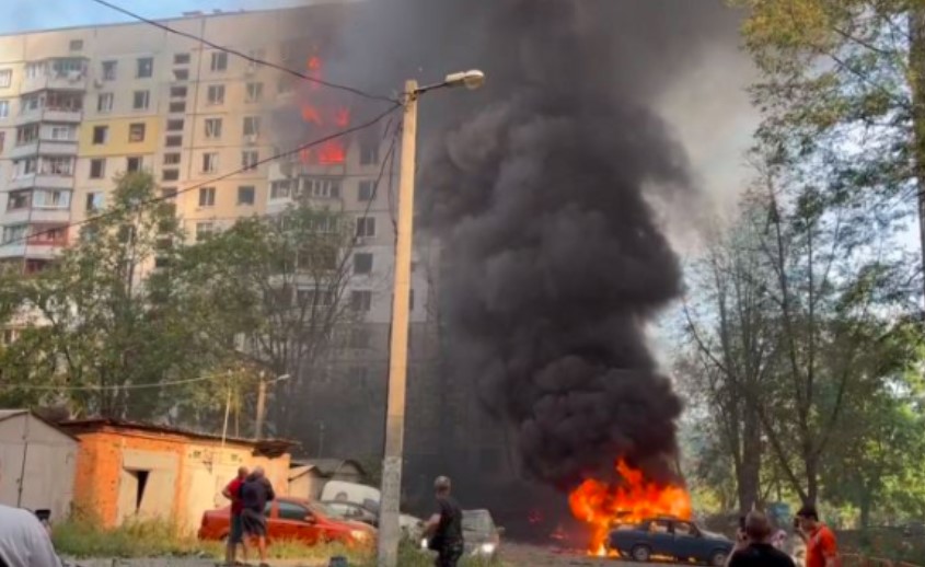 В Індустріальному районі Харкова російський КАБ потрапив у 12-поверховий житловий будинок. На місці спалахнула пожежа. За словами Терехова, троє людей загинули.