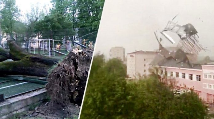 Місцевим жителям навіть вдалося зняти момент, коли негода зривала дахи. Про це повідомляє 24 канал із посиланням на публікації в соцмережах.