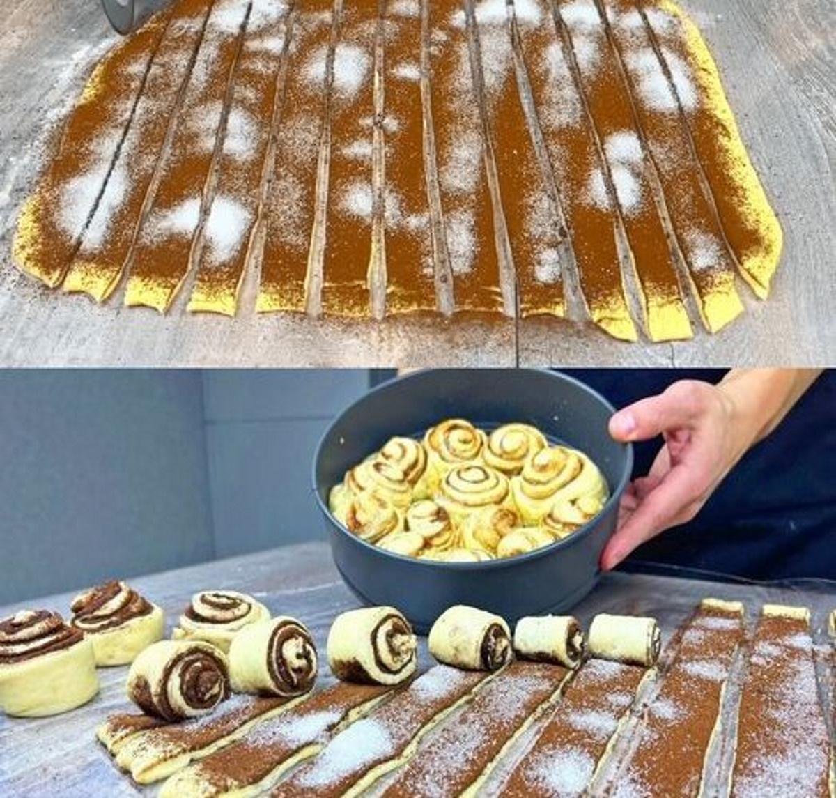 Просіюючи, всипаємо борошно з какао та розпушувачем. До речі, його можна замінювати содою, 0.5 ч.л. гашеною оцтом або соком лимона. Замішуємо тісто, яке виходить негустим та перемішується лопаткою.