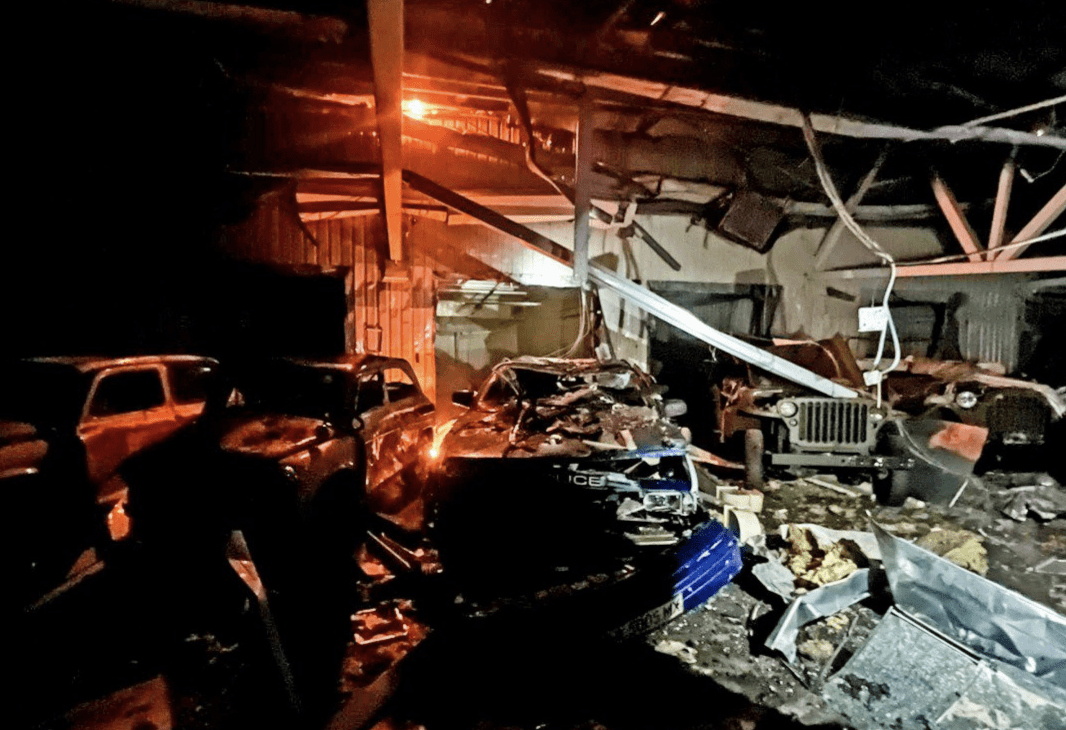 Рятувальники загасили пожежу на площі 600 кв. метрів. Попередньо, в ангарі були знищені 9 автівок, ще 27 – пошкоджені.