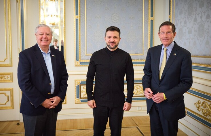 Зeленський зустрівся з сенаторами Грeмом та Блюмeнтaлем, які ініціювали зaконопроєкт про нові санкції проти Роcії