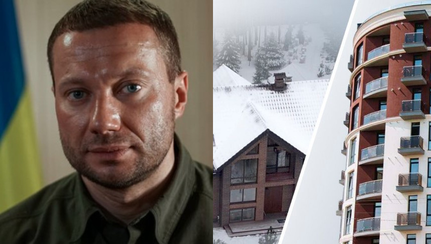 Йдеться про великий маєток та дві земельні ділянки під Києвом, 200 квадратних метрів офісної нерухомості в столиці, два кросовери, три квартири з паркомісцями в елітних житлових комплексах Києва та чотири апартаменти з паркомісцями в Ужгороді, оформлені на батьків та бабусю дружини. При цьому, елітну нерухомість в Ужгороді купували вже під час повномасштабної війни.
