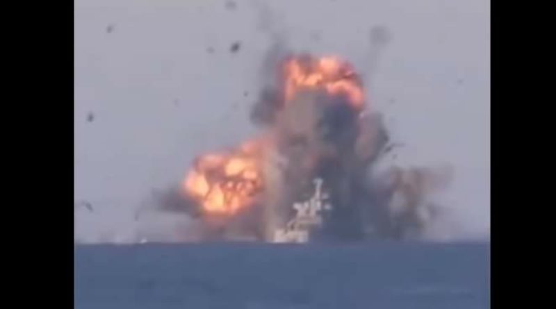 В мережі оприлюднили немовійно ефектне відео, як вибухає крейсер “Москва” і друзки від нього летять в усі сторони.