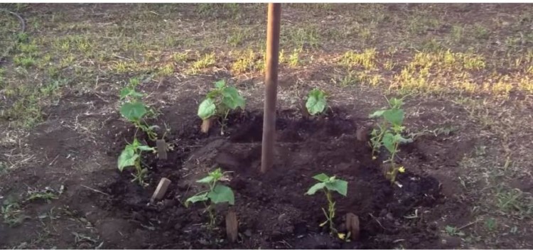 Зробили? Відмінно! Тепер по колу посадіть огірки. Ідеальна відстань між посадками – 40-50 сантиметрів. І обов’язково поруч з кожною посадкою поставте невеликий дерев’яний прямокутник – тримач для розсади.