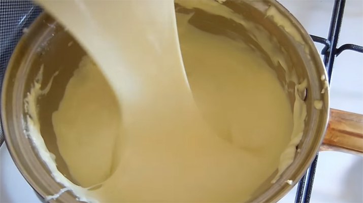 Розміщуємо каструлю на мінімальний вогонь (можна приготувати на паровій бані). Весь час мішаємо сир, поки готуємо. Сир повинен стати густим і тягучим, тоді він готовий.