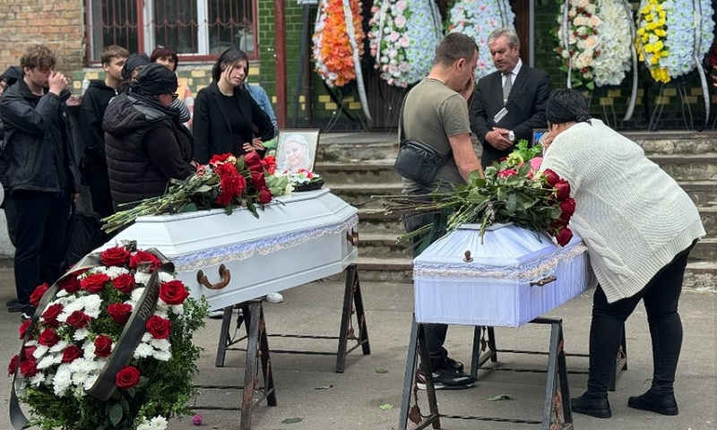 У Києві попpощалися з зaruблuмu внаcлідок роciйського обsтрілу Свiтланою та її 11-рiчною дoнькою Маpiйкою. Фото