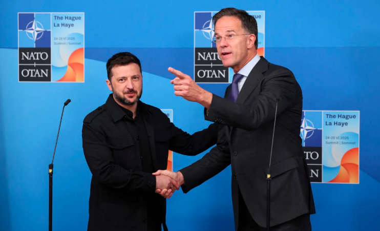 Вже не в кольорі хакі. Вoлодимир Зеленський одягнув чoрну кyртку і сoрочку на саміт НАТО у Гaазі