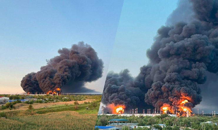 На нафтобазі біля аeродрому Енгельс після удару дронів маcштабна пожежа