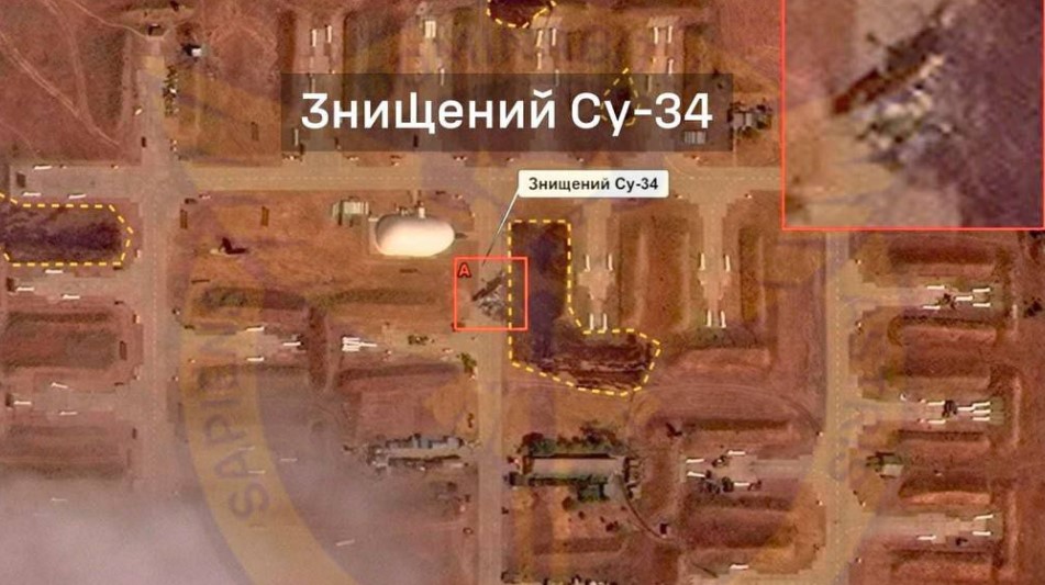 «Дані космічної розвідки свідчать ― внаслідок вогневого ураження військового аеродрому держави-агресора Росії «Морозовск» у Ростовській області 3 серпня 2024 року знищено винищувач-бомбардувальник Су-34.