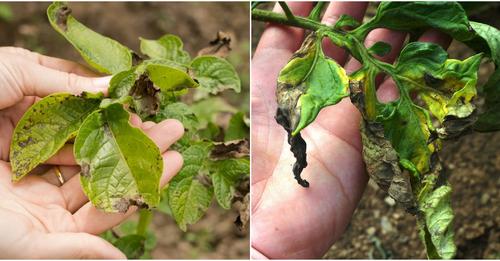 Коли на плодах, листі й бадиллі помідорів та картоплі з’явилися коричневі плями, а потім вони стали чорними — це означає, що на рослині заселився грибок фітофтори.