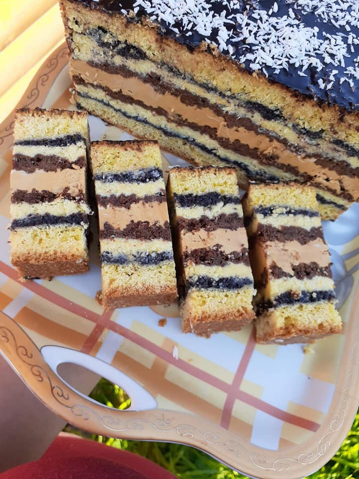 Одну частину світлого тіста розтачати, викласти у форму, зробити невеличкий бортик, викласти 1/2 макової начинки, зверху рівномірно викладаємо 1/2 сирної начинки, обережно розрівнюємо ложкою, щоб начинки не перемішалися.