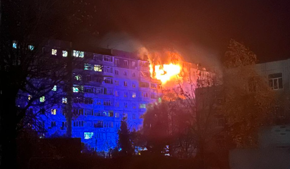 Пожежа у багатоповерхівці через влучання БпЛА, Суми, 31 жовтня 2025 року. Суспільне Суми