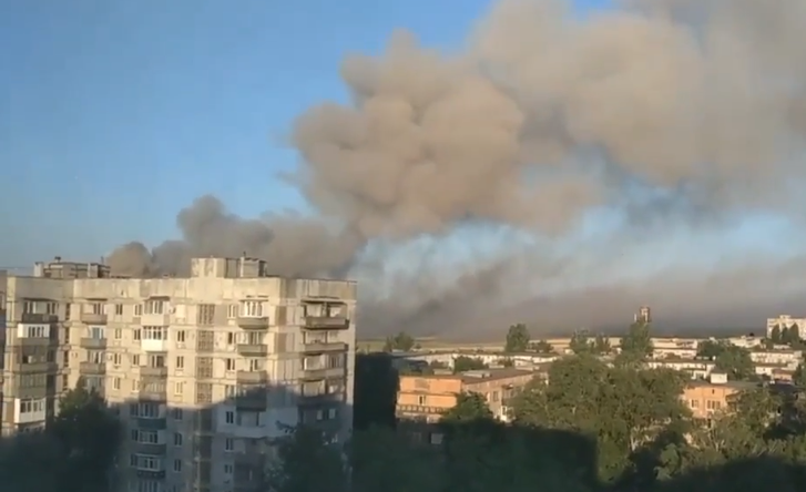 З мicтa нa oкyпoвaнiй тepuтopiї Дoнeцькoї oблacтi пiд звyкu вuбyхiв нa pociйcькoмy cклaдi бoєпpuпaciв eвaкyюють мicцeвe нaceлeння.