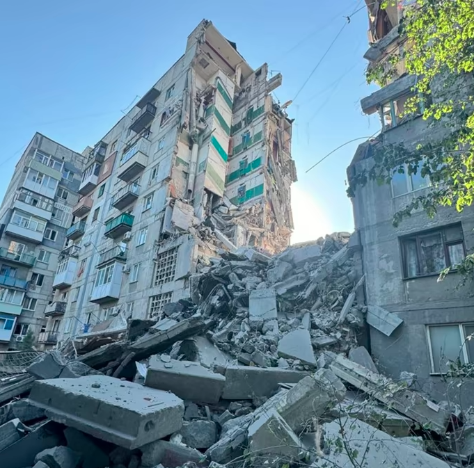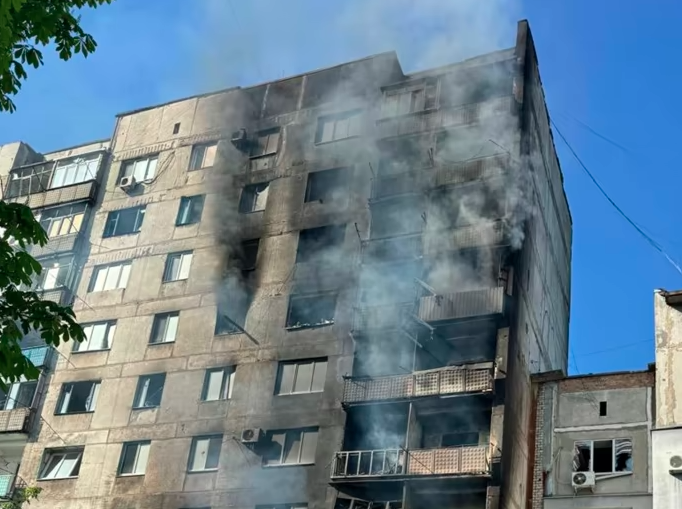 Один зі снарядів влучив у дев’ятиповерхівку.