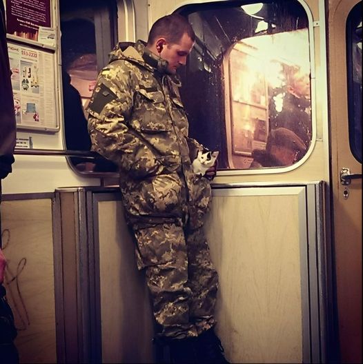 Коли через кілька станцій людей стало менше, я побачила чоловіка у військовій формі з дуже стомленим обличчям.