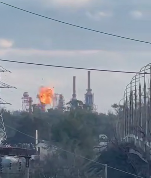Канал публікує відео очевидців з ударом по НПЗ.