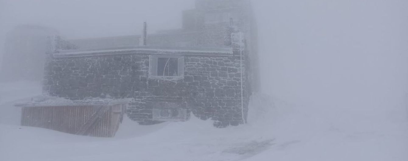 На горі Піп Іван станом на 7:30 хмарно та обмежена видимість до 20 м через сніг та південно-західний вітер 14-15 м/с. Пориви сягають інколи 20 м/с. Температура повітря -4°С.