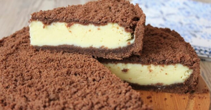 Сьогодні хочу запропонувати вам рецепт подібного пирога – можна сказати це двійник, але тільки темний. В пісочну крихту додається какао-порошок, який надає цьому пирогу пречудовий шоколадний аромат і смак. А шоколад з сиром поєднується просто ідеально!