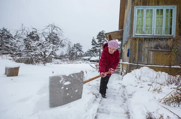 Робить все акуратно: від хвіртки до самого ґанку – вузьку, рівну стежку. Згрібає сніг до стіни будинку, як любила.