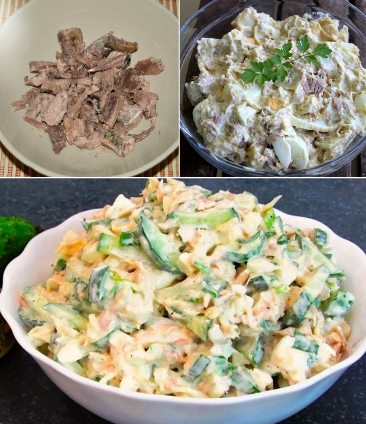 - У салатнику змішайте всі інгредієнти та заправте його майонезом.