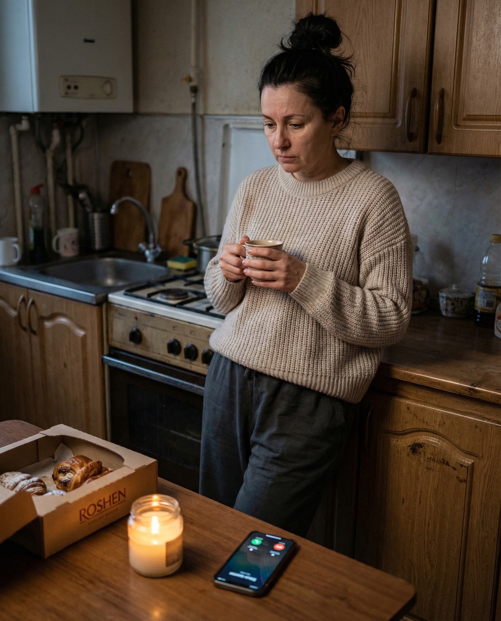 Ось Роман, теж умившись, заходить на кухню і сідає за стіл. Яна чекає. Але чоловік мовчки бере виделку, хліб і починає їсти. Випивши каву, він каже: «Дякую» – і йде вдягатися.