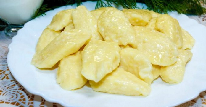 - Закип’ятіть воду, злегка посоліть. Відокремлюйте ложкою невеликі шматочки тіста і опускайте в окріп.