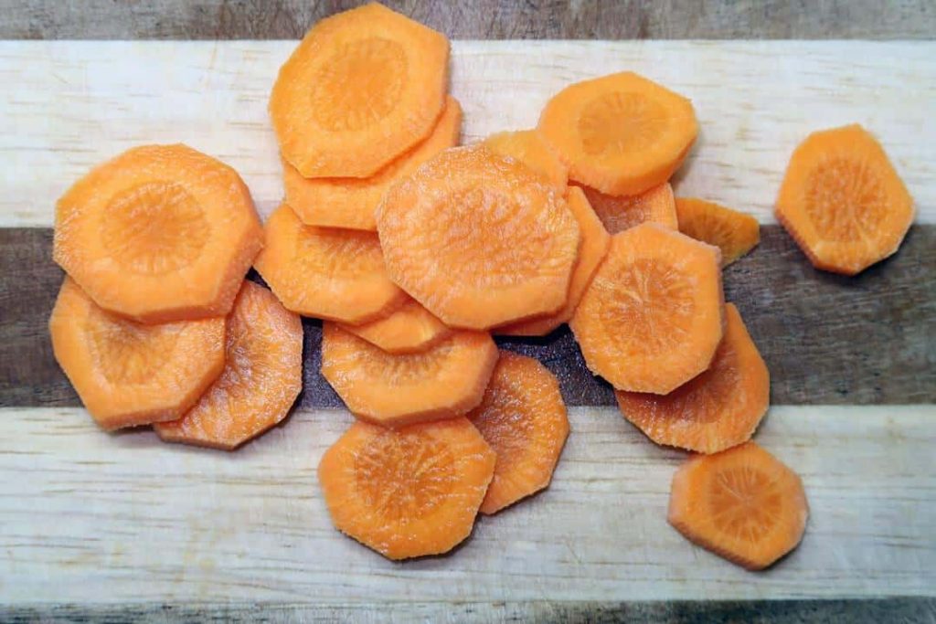 Очищаємо і промиваємо моркву. Моркву нарізаємо кільцями.