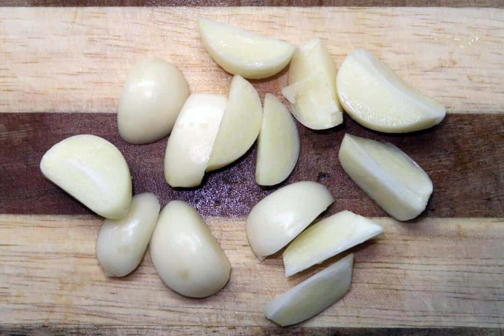 Очищаємо часник від лушпиння і промиваємо його. Якщо зубчики часнику великі розрізаємо їх на дві або чотири частини.