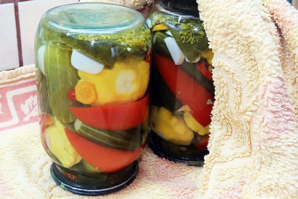 Мариноване овочеве асорті з патісонів, огірків і перцем на зиму: вдалий і дуже смачний рецепт заготовки
