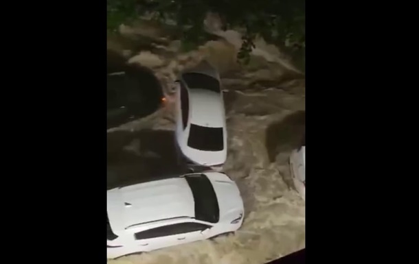 У російському місті Сочі після потужної зливи десятки автомобілів опинились у водяній пастці. Автівки просто плавають по вулицях. Про це повідомляють місцеві Telegram-канали.