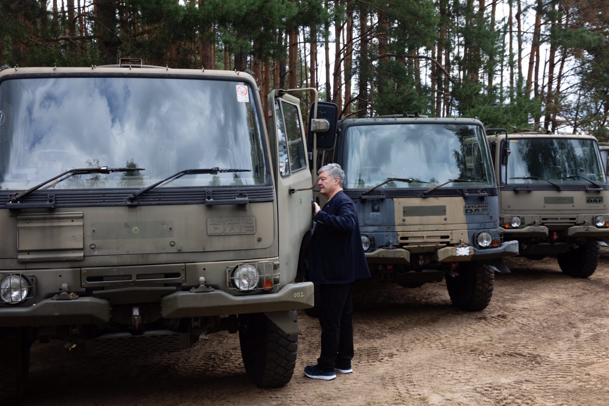 Петро Порошенко у прикордонному з Україною районі Польщі показав британські вантажівки Leyland DAF, які разом з волонтерами купив для ЗСУ.