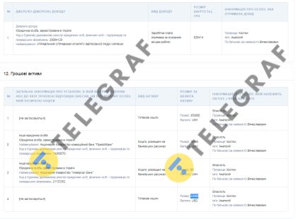 Згідно з декларацією за 2023 рік, зарплата Костюха склала 626 тисяч гривень. Крім того, він задекларував 19 тисяч гривень на банківському рахунку, а також 350 тисяч гривень та 32 тисячі доларів готівкою.