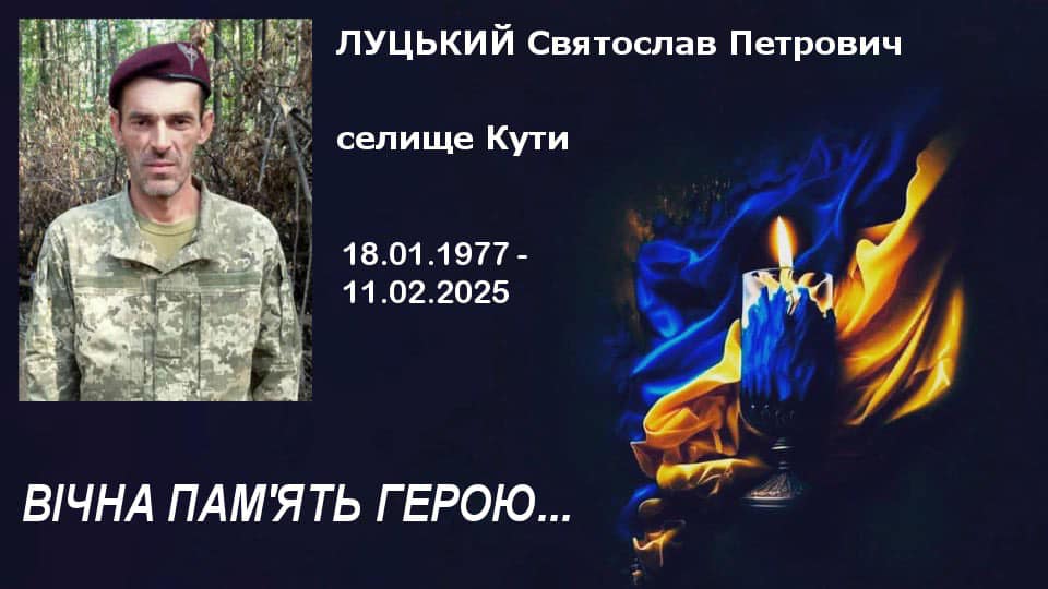11 лютого під час бойового завдання на Курському напрямку загинув 48-річний військовослужбовець із селища Кути Святослав Луцький.