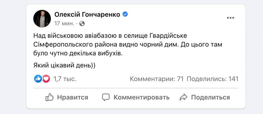 За їхніми словами, на території військового авіабази пролунало кілька вибухів.