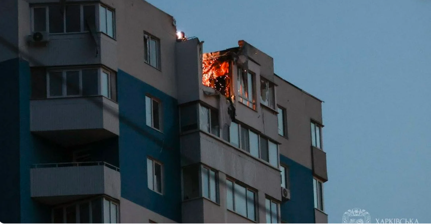 Вночі 5 червня армія РФ вдарила по Слобідському району Харкова. Один із безпілотників влучив у 17-й поверх багатоповерхівки.