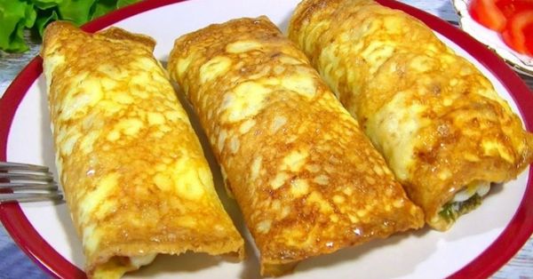 Яйця змішуємо з молоком і сіллю, випікаємо 3 яєчних млинця.