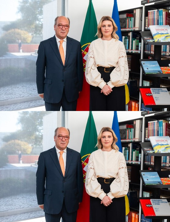 Дружина Володимира Зеленського вже побувала у португальському місті Кашкайш, де відкрила українську книжкову поличку у муніципальній бібліотеці. Також перша леді відвідала столицю Португалії. У Лісабоні вона взяла участь у відкритті меморіальної дошки жертв Голодомору в Україні 1932-1933 років. Фотографії з робочої подорожі Олена Зеленська опублікувала на сторінці в Instagram.
