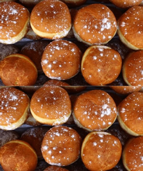 Посмажені пампушки виймати на тацю, застелену паперовими рушничками, щоб забрати зайву олію. Посмажені і вистуджені пампушки припудровуємо “цукром-пудром”
