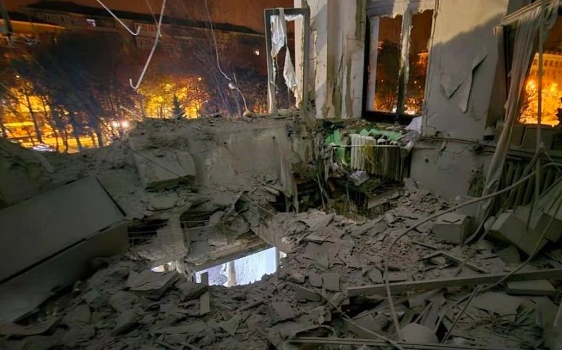 Внаслідок прямого влучання під час обстрілу Харкова близько 21:00 28 жовтня частково зруйновані приміщення 2-го та 3-го поверхів адмінбудівлі Держпрома у центральній частині міста. Пошкоджені також житлові будинки, лікарня та навчальні заклади поруч.