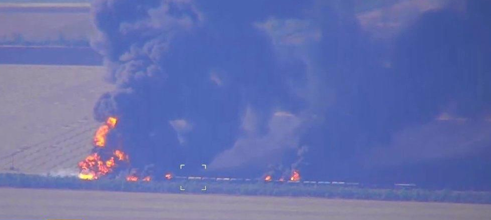 Приблизно о 17:00 Андрющенко повідомив, що прямо зараз Сили оборони уразили та добивають російський потяг з цистернами на ділянці залізниці між селом Левадне (47 °10′34″ Пн, 35 °34′34″ Сх ) та містом Молочанськ (47 °12′15″ Пн, 35 °35′53″ Сх) Токмакського району Запорізької області (окупованої).