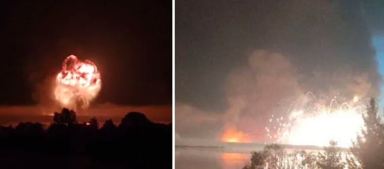 Автор каналу також звернув увагу на одне з фото, що розлетілося в мережі, що зафіксувало детонацію на місці пожежі: він вважає, що вона свідчить про зберігання на арсеналі зенітних ракет.