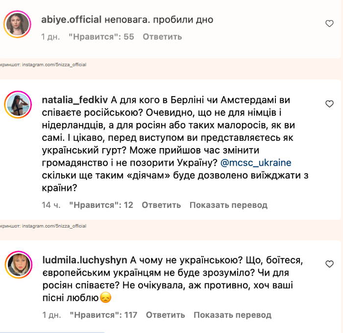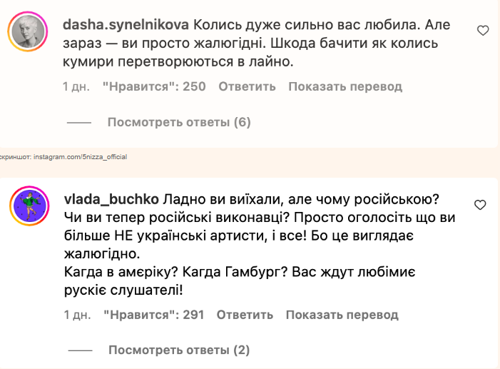 У коментарях люди звернулася до артистів із проханням оголосити себе російськими виконавцями