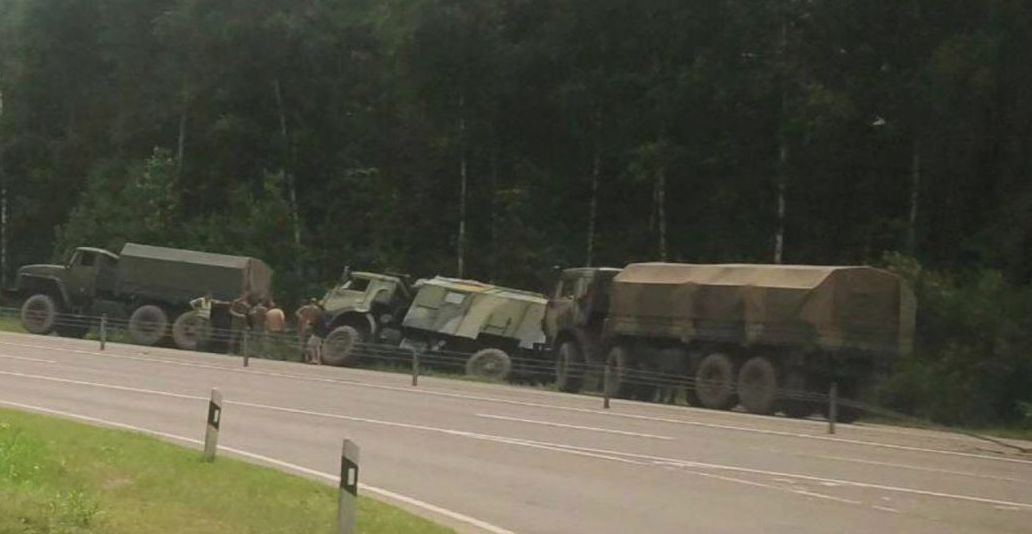 У Білорусі помітили колону російської техніки, що рухається від Мінська в напрямку українського кордону.