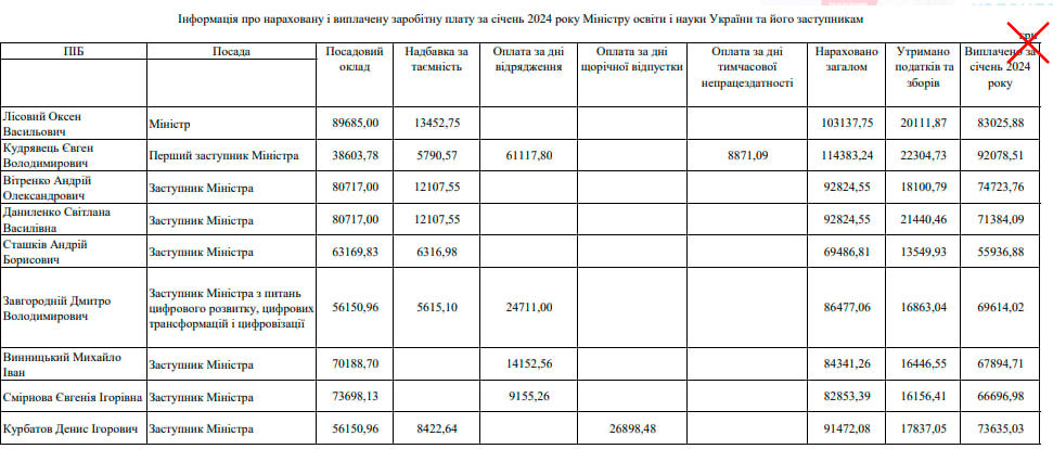 Загалом за 2024 рік зарплата міністра становила 1 402 512 гривень. Щоб заробити стільки само, учителю з 30 роками стажу доведеться працювати п’ять років.