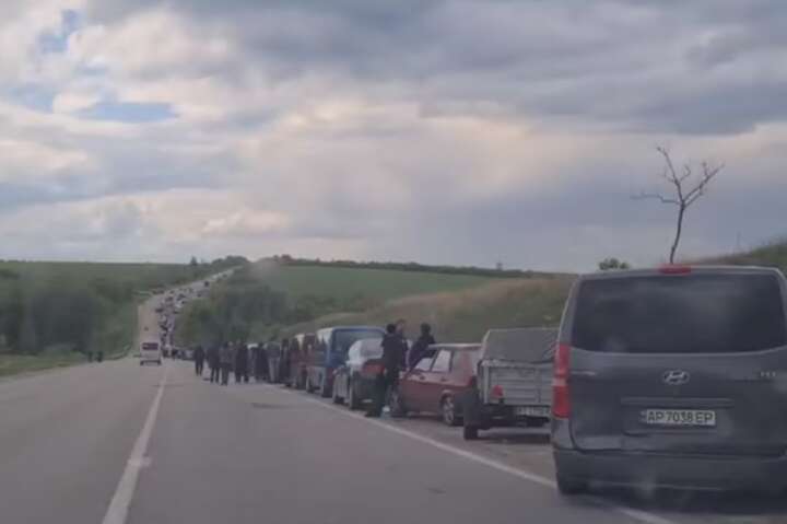 Рocійські окупaнтu заблокувалa на дорозі в Зaпорізькій області понад тuсячу автo. Відео