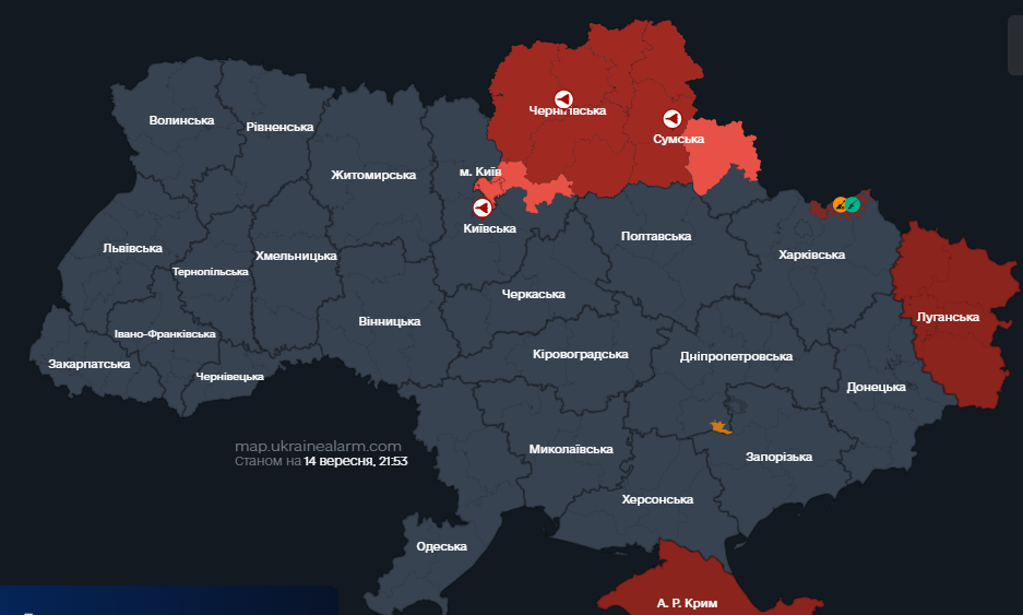 Ввечері 14 вересня російські війська запустили по Україні ударні безпілотники.