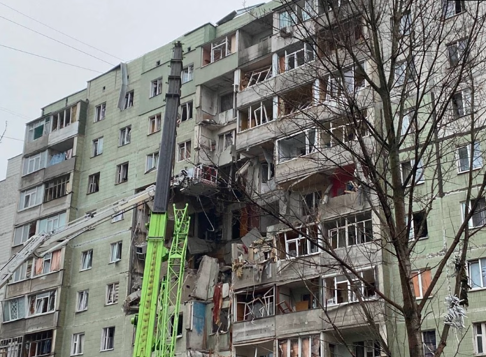 Унаслідок атаки попередньо зруйновано 9 квартир та 12 балконів. У будинку, де було влучання, відключили електро-, водо- та теплопостачання. Також в одному під’їзді немає газу.