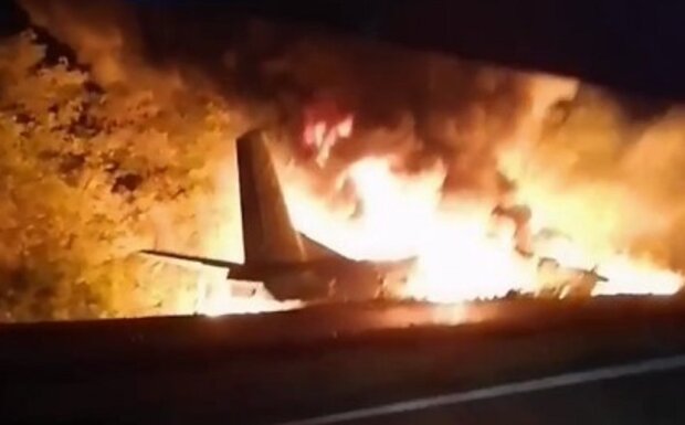 Відео: У Чугуєві впав літак з військовими та загорівся