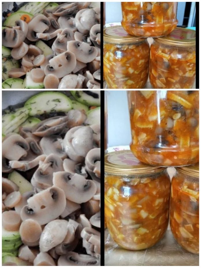 Процес приготування салату з кабачків та шампіньйонів на зиму: