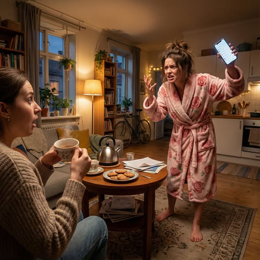 – Твій благовірний вже третю годину мені дзвонить, божеволіє! А ти тут, у мене вдома чайок попиваєш із печивом! Ну, обрегочешся…